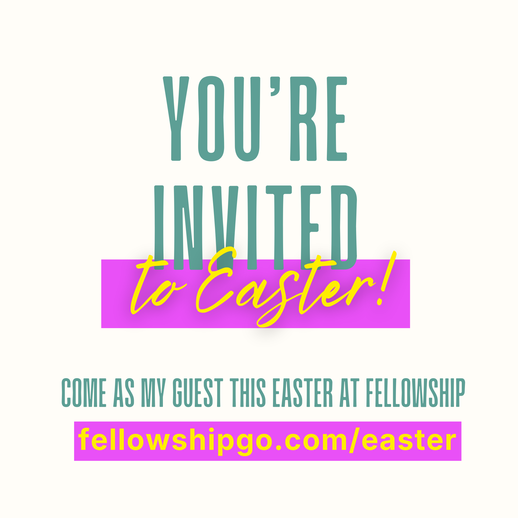 Need inspiration? Here's an example: Hey there! I would love it if you could come to Easter at fellowship with me. You can see the service times here - let me know what works for you! https://www.fellowshipgo.com/easter